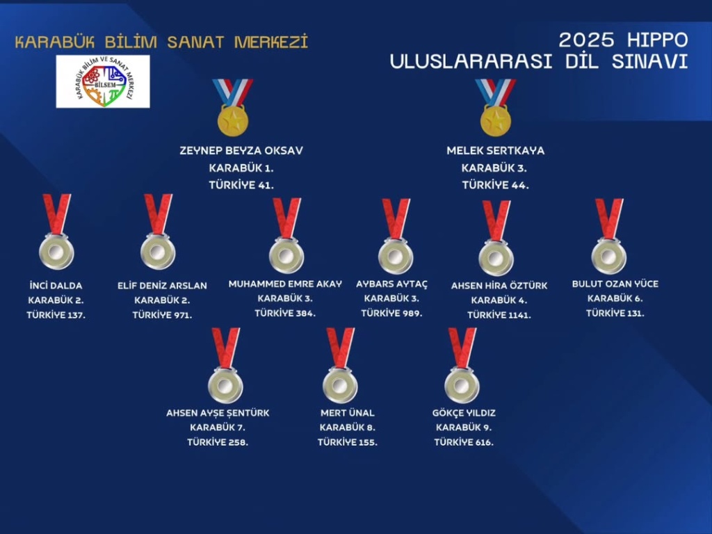 Kurumumuz İngilizce Öğretmeni Rıdvan Cihan OKSAV danışmanlığında bu sene ilk kez katıldığı bu sınava 29 öğrenci ile katılım sağladı. 11 öğrencimiz bu sınavda Karabük ilinde ilk 10’a girme başarısını gösterdi. Ayrıca Zeynep Beyza OKSAV ve Melek SERTKAYA da alanlarında büyük başarı göstererek ikinci tura katılma başarısını gösterdiler. Öğrencilerimizden Melek SERTKAYA 2 puanla yarı finali kaçırırken, Zeynep Beyza OKSAV ise büyük başarıyla Türkiye’de 3. olarak 26-28 Mayıs tarihleri arasında İtalya’da gerçekleştirilecek olan yarı finale katılmaya hak kazandı.