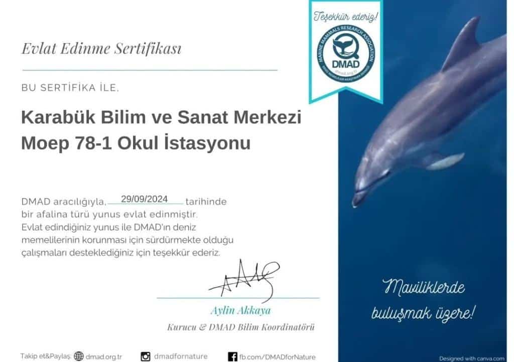78-1 Okul İstasyonumuzun okyanus ve su okur yazarlığı çalışmalarına sağladıkları destek için MoEP Deniz Biyolojisi Takımı (MARBIT) ve Deniz Memelileri Araştırma Derneği (DMAD)'da teşekkür ederiz. Çalışmaları koordine eden Murat Yavuz öğretmenimizi ve tüm mürettebatımızı tebrik ederiz.